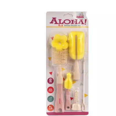 Adore Aloha Bottle Cleaning Brush Kit: Includes flower sponge, teat brush, straw brush, nylon brush, and loop-headed brush.