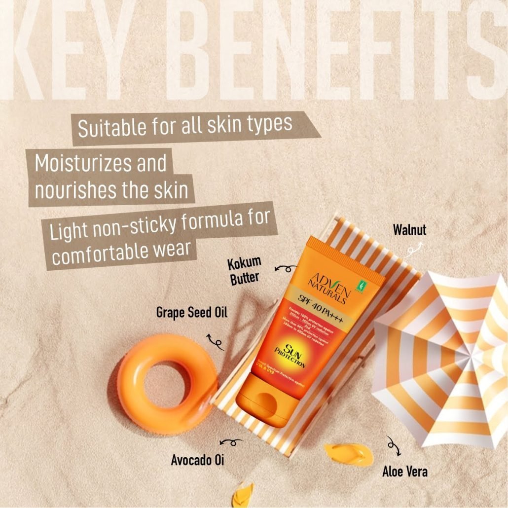 Adven Sun Protection Cream shields your skin from harmful UV rays, preventing sun damage. This cream provides broad-spectrum protection, keeping your skin safe and healthy under the sun. It’s lightweight and non-greasy, making it perfect for everyday use. Suitable for all skin types, ensuring comprehensive sun protection.