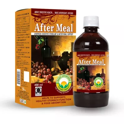 Basic Ayurveda After Meal: After-meal digestive aid by Basic Ayurveda. Promotes digestion and soothes the stomach after meals.