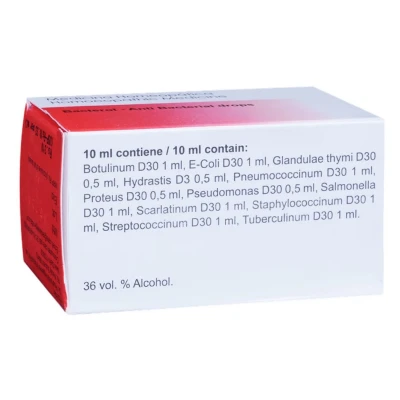 Botulinum, E-Coli, Pneumococcinum, Proteus, Pseudomonas, Salmo-nella, Scarlatinum, Staphylococcinum, Streptococcinum, Tuberculinum,Glandulae thymi,Hydrastis