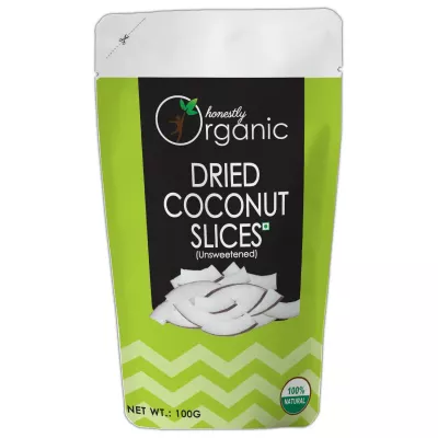 Honestly Organic Dried Coconut Slices: Naturally dried coconut slices, organically sourced and packed with nutrients for a delicious and healthy snack option.