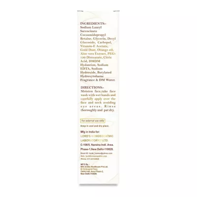 Lords 24 Karat Gold Face Wash 100ml: Enriched with 24 karat gold particles, this face wash deeply cleanses skin, removes impurities, and enhances a radiant glow. It leaves the skin feeling refreshed, revitalized, and glowing with a luxurious touch.