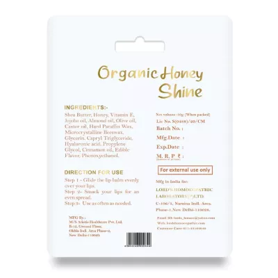 Lords Organic Honey Shine Lip Balm (10g): Nourish your lips with our Organic Honey Shine Lip Balm. Moisturizing and long-lasting, it provides a smooth application and a natural shine. Made with organic ingredients for the best care.