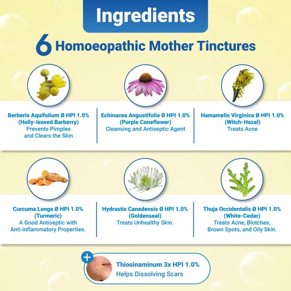 Berberis Aquifolium Ø HPI (1.0 %), Hamamelis Virginica Ø HPI (1.0%), Thuja Occidentalis Ø HPI (1.0 %), Echinacea Angustifolia Ø HPI (1.0 %), Curcuma Longa Ø HPI (1.0 %) , Hydrastis Canadensis Ø HPI (1.0 %), Thiosinaminum 3x HPI (1.0 %) In a Soothing and Non - Staining Gel base q. s.