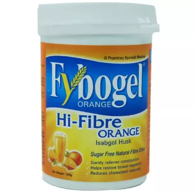 Reckitt Benckiser Fybogel Hi-Fibre Isabgol Husk Powder (Orange): High-fiber supplement with orange flavor, eases constipation, promotes bowel regularity.