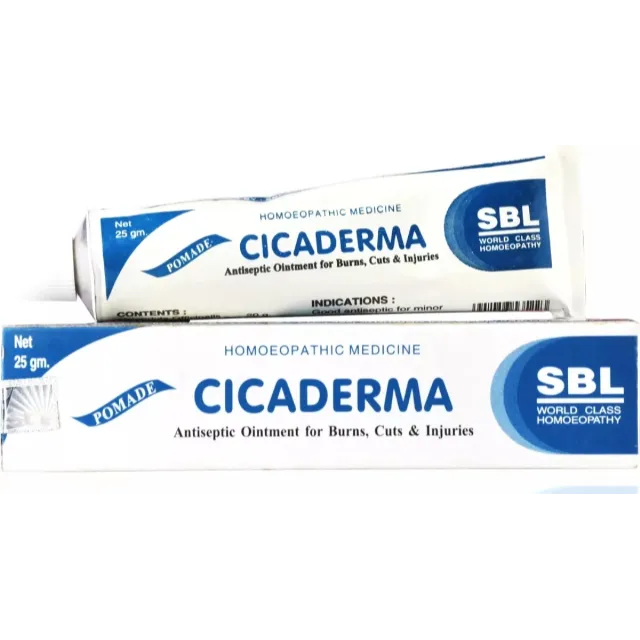 SBL Cicaderma Ointment is a homeopathic ointment that aids in the natural healing of scars and wound management. It can be applied topically to minimize scar formation.