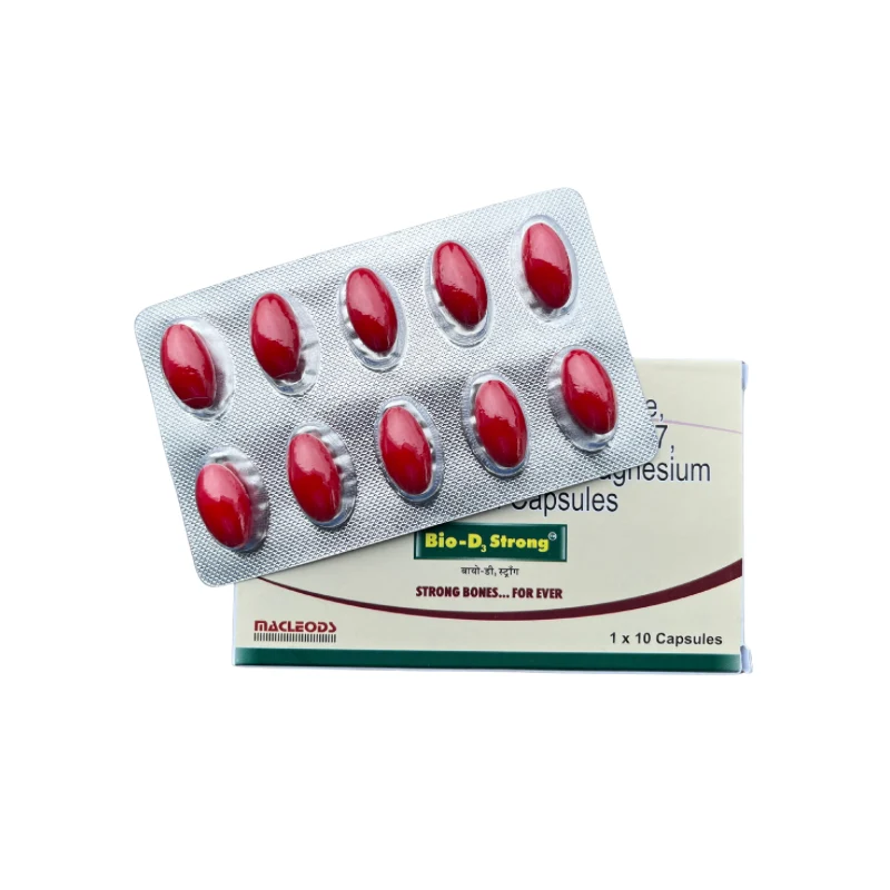 Bio D3 Strong Capsule is a nutritional supplement that supports overall bone and joint health. It helps maintain optimal calcium levels, ensuring a proper supply of calcium to the bones and reducing the risk of fractures. The capsule is beneficial in managing joint pain, inflammation, osteomalacia, rickets, and osteoarthritis.