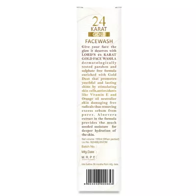 Lords 24 Karat Gold Face Wash 100ml: Enriched with 24 karat gold particles, this face wash deeply cleanses skin, removes impurities, and enhances a radiant glow. It leaves the skin feeling refreshed, revitalized, and glowing with a luxurious touch.