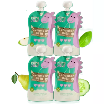 Rorosaur Cucumber, Green Apples, and Basil (100g, pack of 4): Refreshing blend of cucumber, green apples, and basil, introducing exciting flavors and nutrients to your baby's diet.
